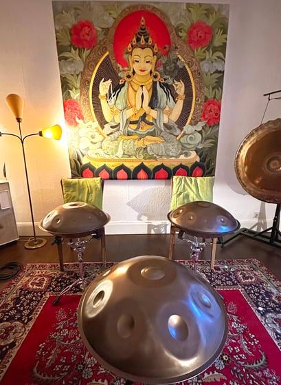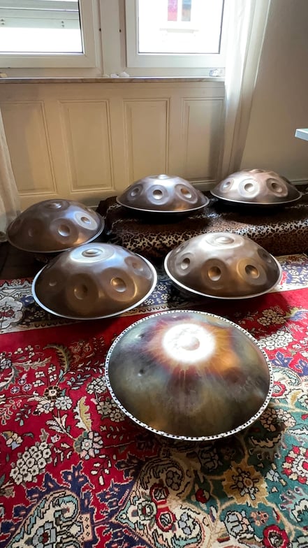 Für alle Handpan Sessions werden hochwertige Handpans in der passenden Stimmung nach Bedarf kostenlos zur Verfügung gestellt.
